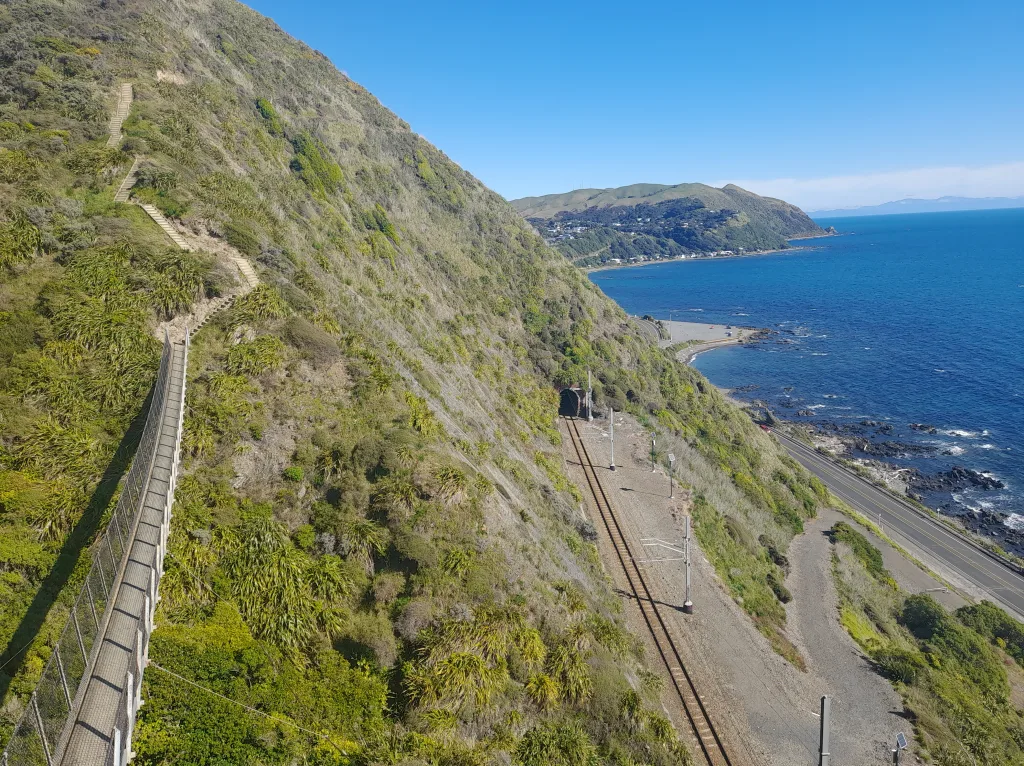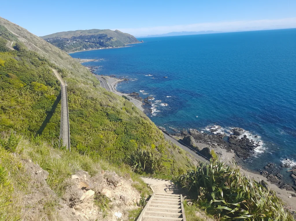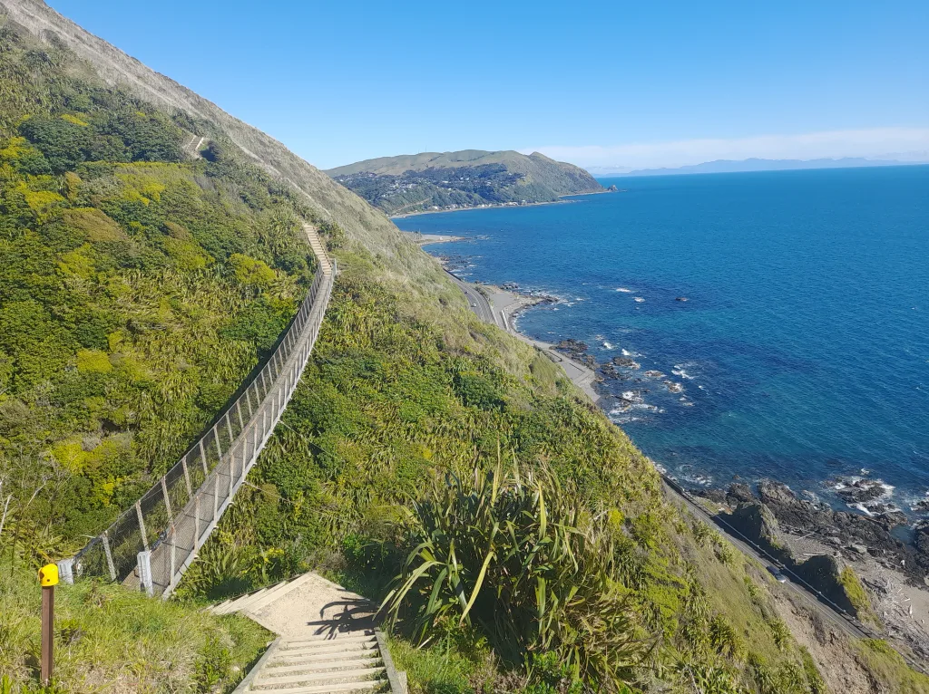 断崖絶壁に沿って続く道は“スリル満点のトレイル”として知られ、晴れた日にはKapiti島と広い海を一望できます。