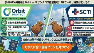ニュージーランドワーホリ【2026値上げ】NZワーホリ保険比較!Orbit対サザンクロス最強は? 【2026年最新】NZワーホリ保険4社を徹底比較!安定のOrbitか、最安のサザンクロス(SCTI)か?ユニケアや日本の保険との価格差を一覧表で公開。一時帰国や豪州旅行の補償、携行品補償、歯科治療の違いなど、後悔しない選び方をブログで解説します。 2025.03.02ニュージーランドワーホリ